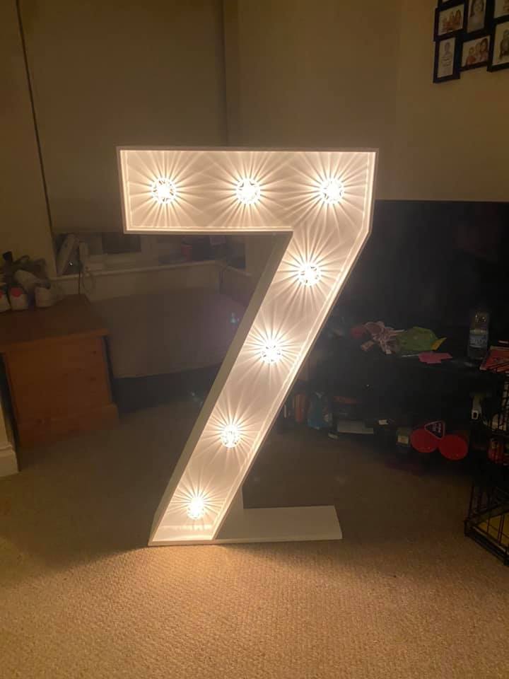 4ft Light up number 7 these letter a strong well made commercial grade, Love letters, they are mains powered, which means there will be no lost of light during your function.
