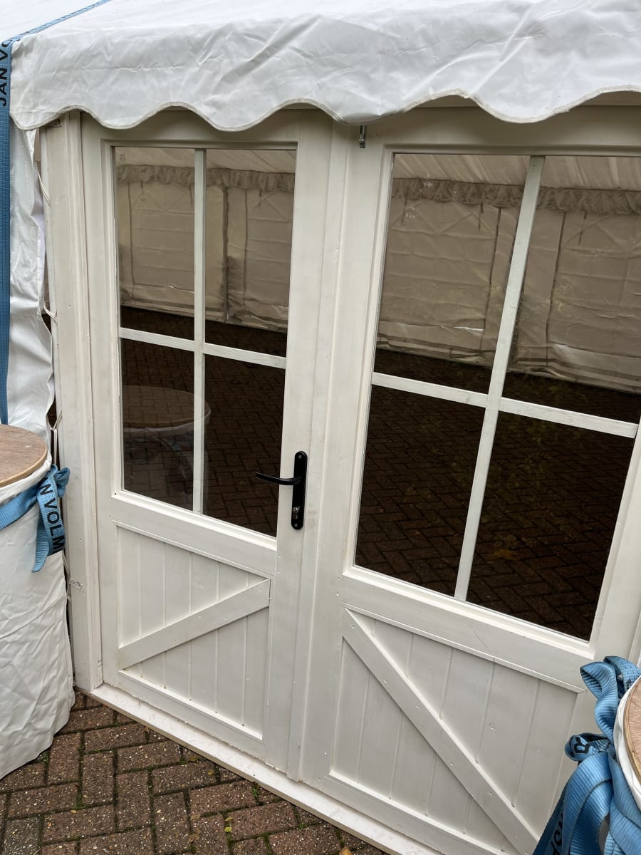 Make a grand entrance at your wedding or event with our stunning double set of white solid doors for marquees. These marquee doors not only add a touch of elegance to your event space, but they also create a structured entrance that will leave a lasting impression on your guests.