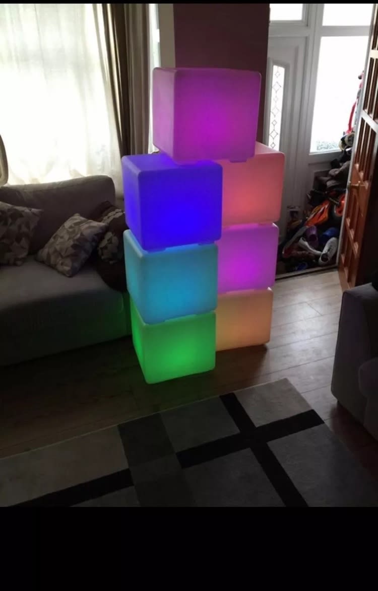 Here for hire we have LED light up pods, the lights charge up no wires to run will last 14 hours can be use as a seat or a table this listing is for all 6 pods