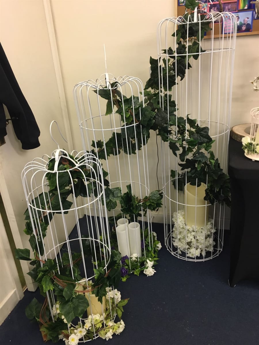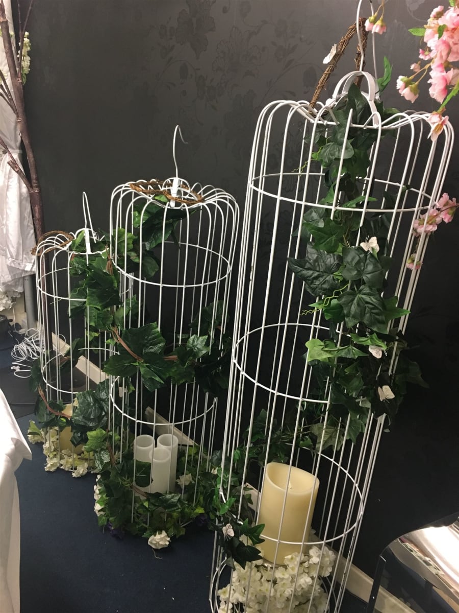 Set of 3 oversized bird cages available for hire. These bird cages for hire would be great as statement centre pieces or decoration for any room.