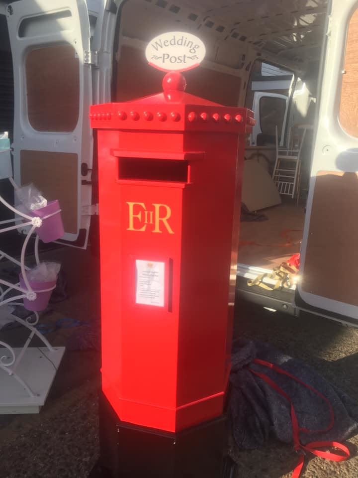 This full size post box can be used as a wedding postbox for cards or even at themed events as a photo prop or just for decoration, the sign at the top can be changed to say either real mail or wedding post depending on event.
