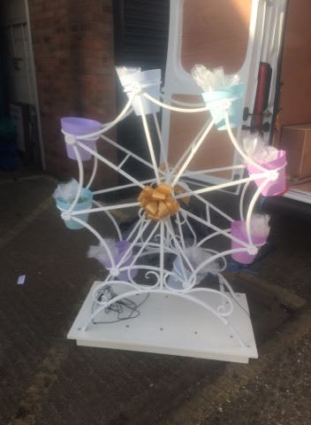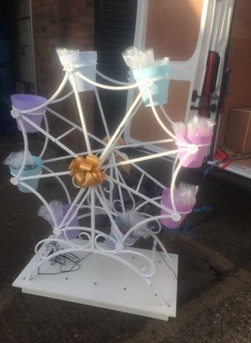 Large 8 bucket colourful bucket Ferris Wheel /Big wheel for hire, each bucket can be filled with 8 sweet cones or lots of smaller bagged sweets.
