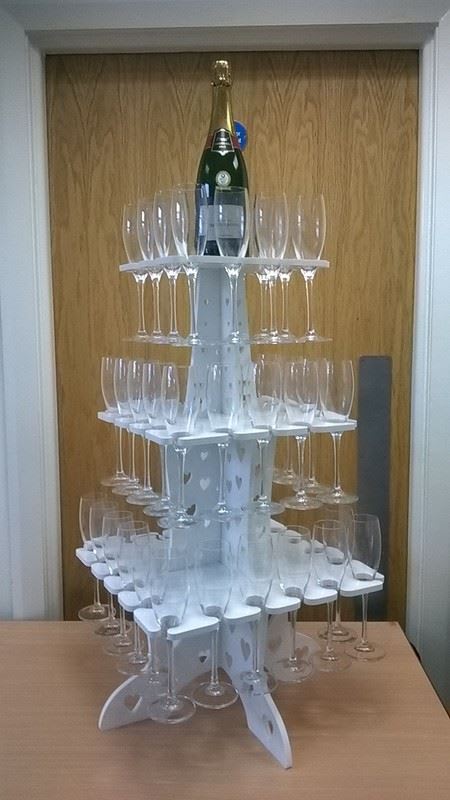 Can be filled with any drink of your choice. Great way to supply welcome drinks without worrying about someone to hand them out.