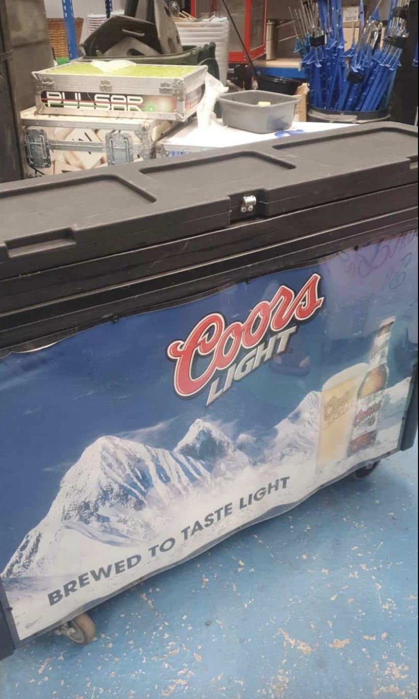 A large drinks cooler, great for events and parties, keep you drinks nice and chilled during our hot summer months, no need to worry about fridges.