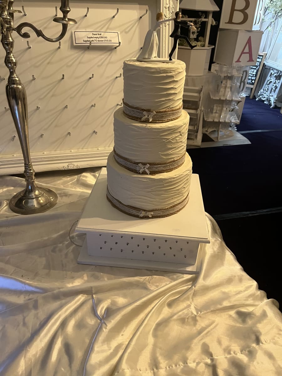 Located in Clacton, Colchester, or Ipswich? You're in luck! Our White Round Cake Stand is available for hire in these areas, allowing you to bring a touch of elegance and charm to your special occasion. Don't miss the opportunity to elevate your event with this stunning cake stand.