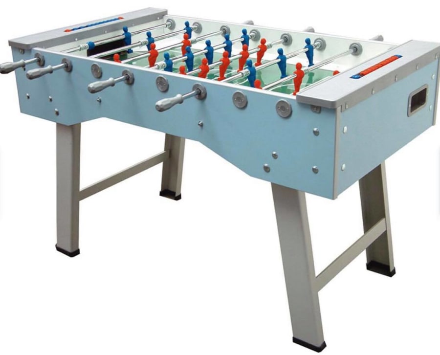 Bring the excitement of the football pitch to your home with the Sondico Professional Football Table The table has a professional and stylish look with wooden effect edging. Fun for all ages the table has 11 players on each side for the proper game feel.Test your skills trying to manage all positions with players set out in a 1-3-5-2 formation covering the goal, defence, midfield and striker positions. With a ball cup holder to store extra balls when not in use, a score rail on either end and leg levellers for an even playing surface this table has everything you need for hours of fun.