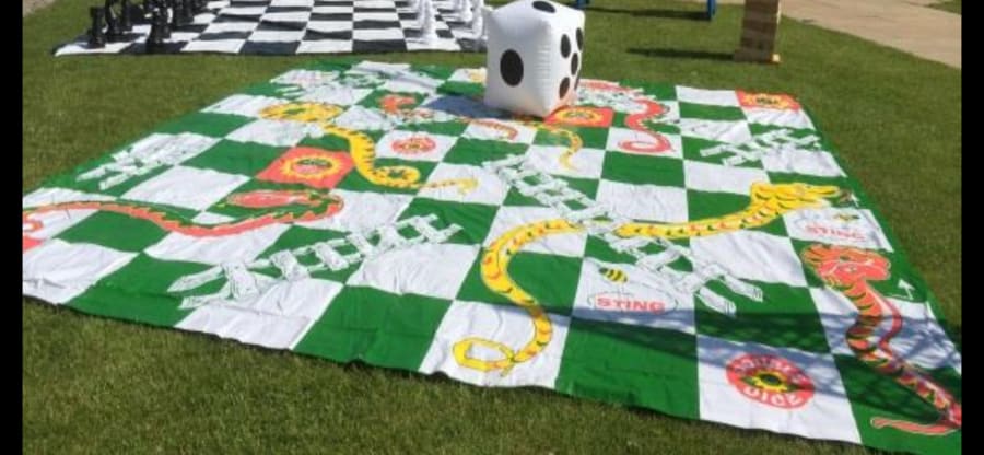 Large snakes & ladders game where you are the counter, so maybe you will have a trip down a snake or have to climb the ladder, also included is a foam dice.