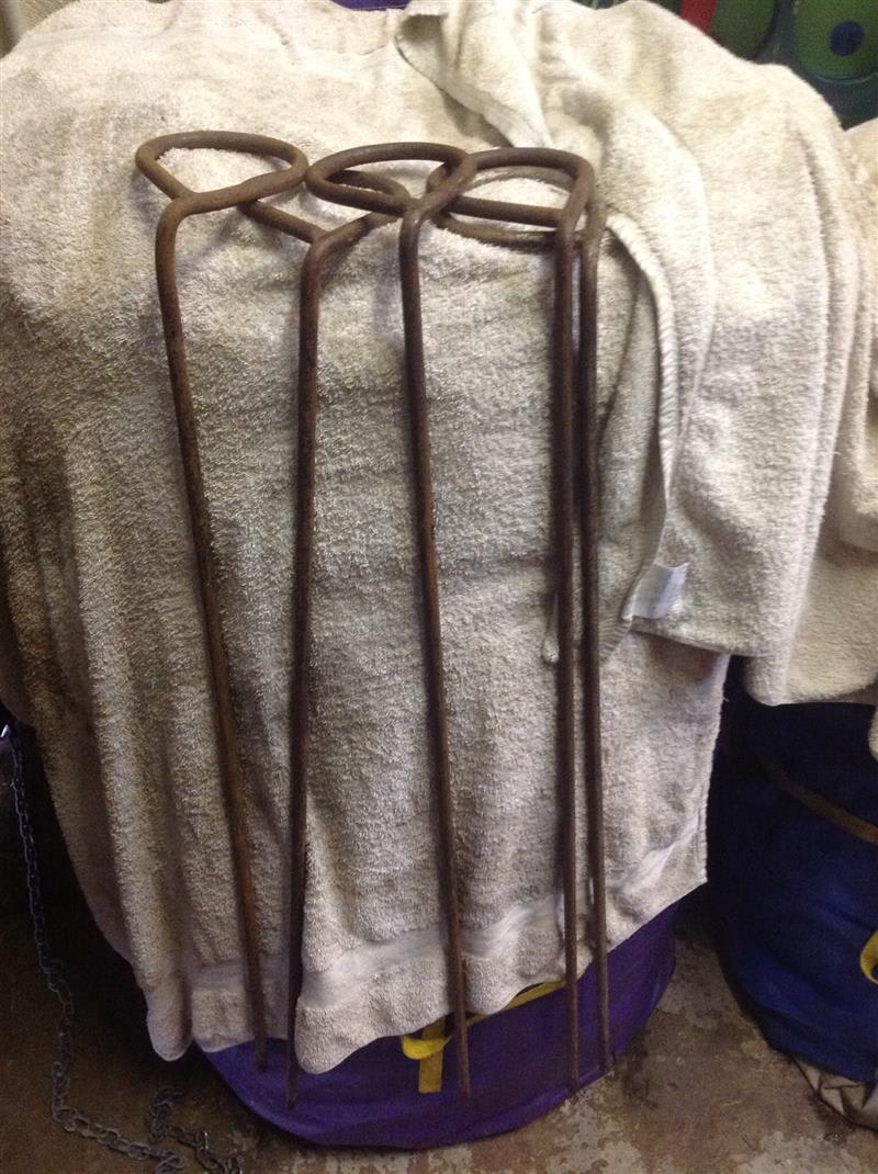 You get 5 irons for a coconut shy, long iron steaks, with round hoops on the top for your coconuts to sit on.