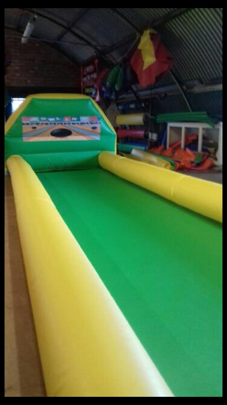 Inflatable skittle Alley comes with skittles and balls, can be used indoor or outdoor too, can be used by any one of any age.