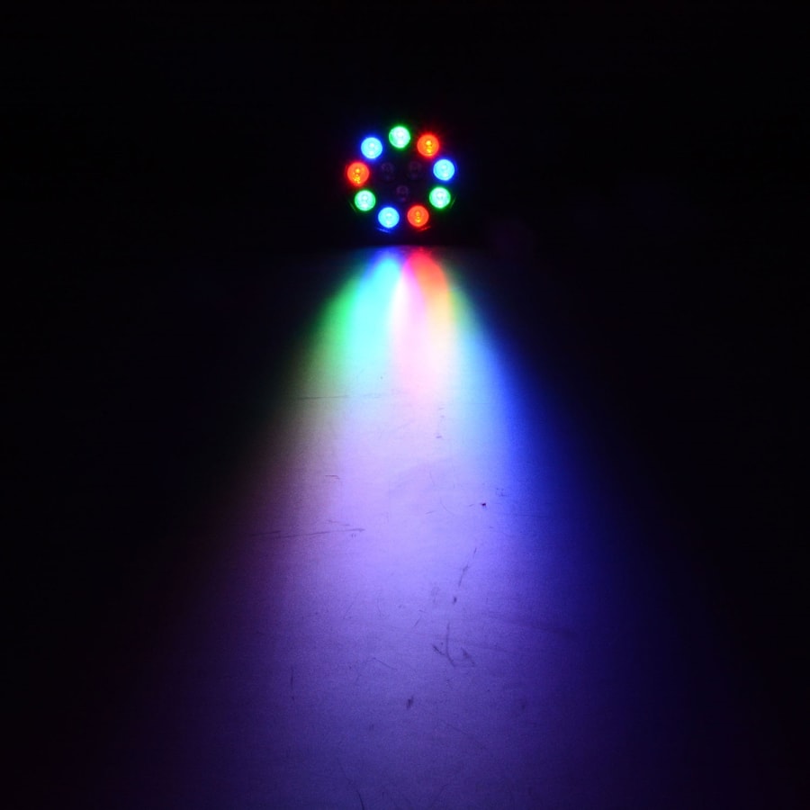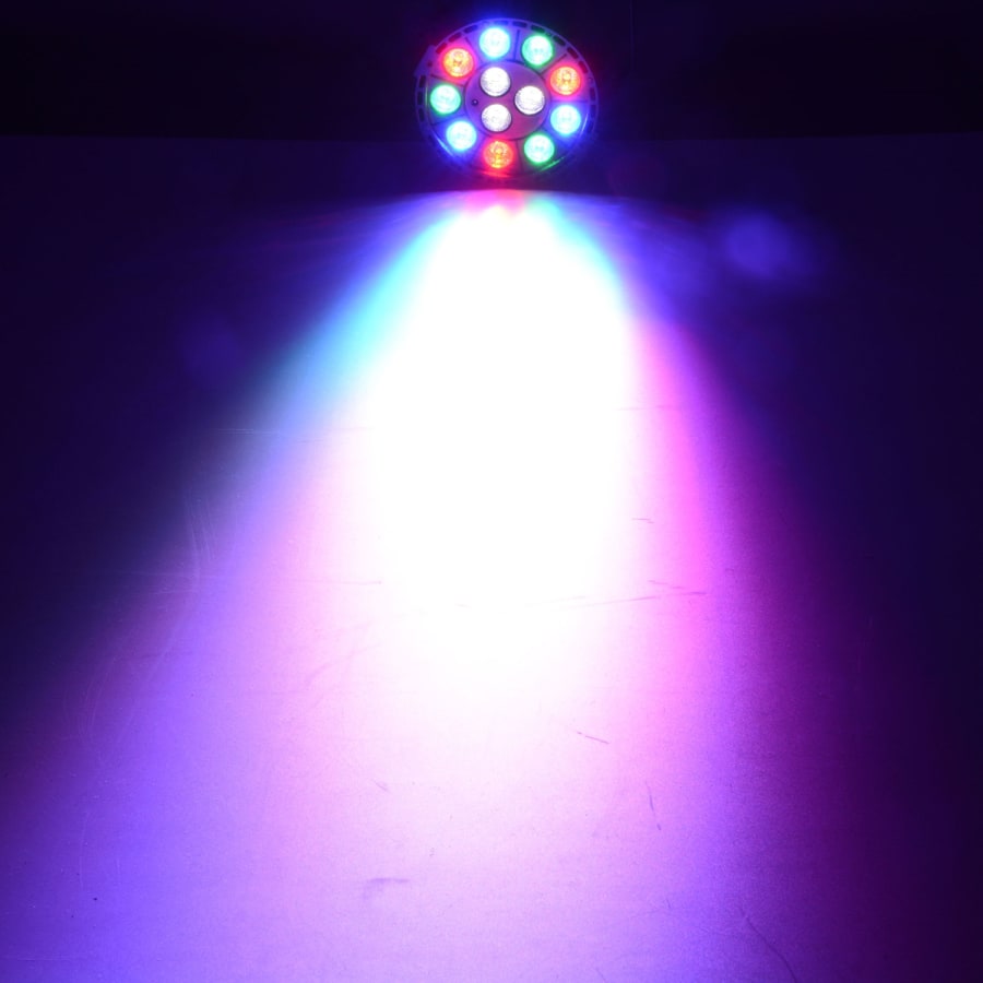 Fitted with 3 red, 3 green, 3 blue and 3 white 1W LEDs for full colour mixing and powered by internal rechargeable battery or with the supplied 12Vdc mains power adaptor.