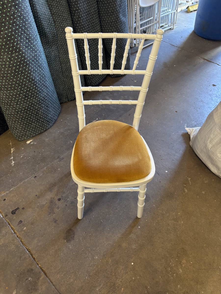 To reserve White wooden Chiavari - Gold seat pads, contact our hire team to discuss quantities, delivery windows and site access. We provide transparent hire agreements, public liability insurance details and a clear timeline for delivery and collection across Colchester, Clacton on Sea, Frinton on Sea, Walton on the naze and Harwich.