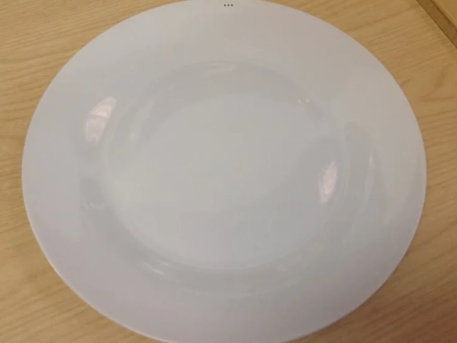 10 x 9" wide rimmed white china diner plates.