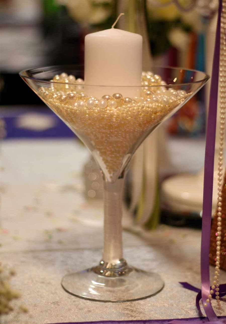 A Martini glass can make a lovely table centre piece by just added a extra few bit to the glass.