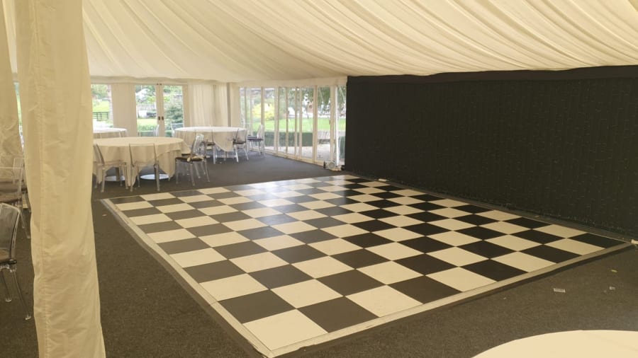 Planning a wedding or a party and want to add a touch of elegance and style to your event? Our Dance Floor Hire is the perfect choice. With its standout black & white tiles, this portable dance floor can be set up on any flat surface, indoors or outdoors.