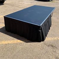 Add a touch of elegance to your event with the 2m x 1m Stage Hire, complete with a pleated skirt for a sophisticated look. Whether you're planning a wedding or a corporate function, this stage is versatile and reliable, ensuring a seamless experience for you and your guests.